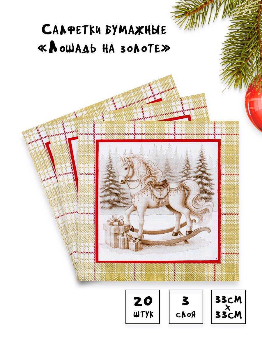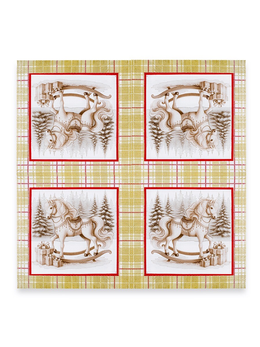 Трёхслойные сервировочные салфетки с изображением лошадки - идеальный элемент для новогоднего декора вашего стола. Их изысканный дизайн добавит торжественности и уюта во время семейных праздников.